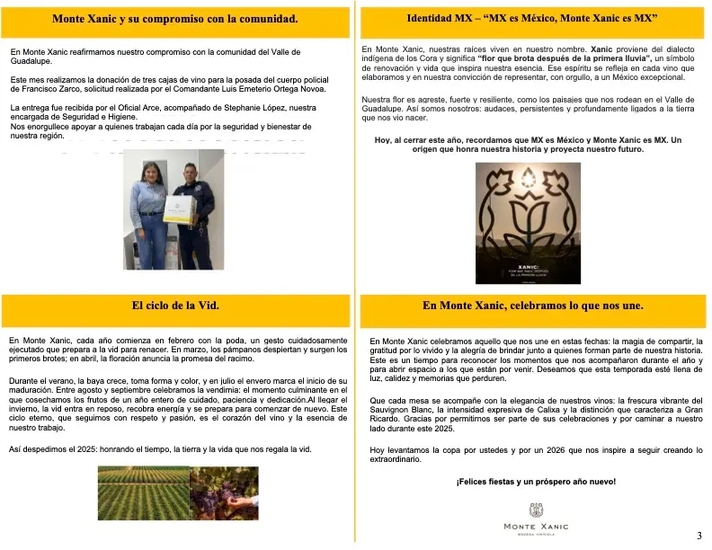 Al cerrar el 2025, en Monte Xanic volvemos la mirada hacia los viñedos que nos han visto crecer y hacia las manos que cada día dan vida a nuestros vinos. Este año, como cada ciclo en la vid, ha tenido momentos ...